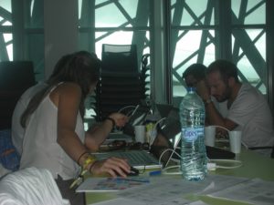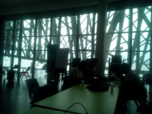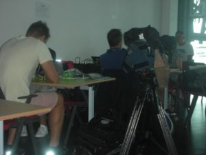 Une ambiance calme règne dans la salle de presse installée au Mémorial Acte pendant que le duel se durcit au Nord de Basse-Terre.