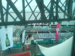 Car c’est à la Pointe de la Vigie que l’histoire s’est jouée entre Miche Malinowsky  et Mike Birch … le petit trimaran jaune Olympus Photo a profité des bascules de vent pour manger le géant Kriter V…de 98  » après 23 jours 6heures, 59 minutes et 35 secondes de mer !