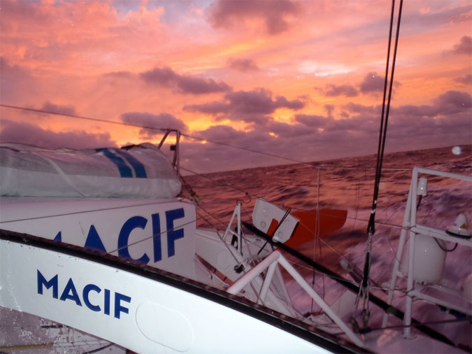 Nouveau record* de François Gabart avec le 60 Pieds MACIF : 545,3 milles parcourus en 24h à la moyenne vertigineuse de 22,3 nœuds (informations du 10/12/2012 à 16h)