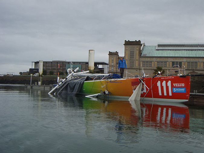 Les dégâts causés par le démâtage sont importants, notamment sur le côté tribord de la coque de Five Oceans of Smiles qui est percée au niveau des ballasts. Les voiles ne sont pas réparables.