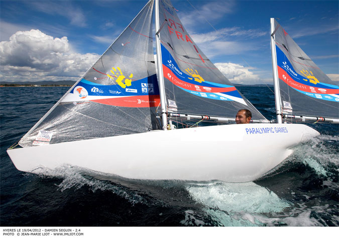 Le 2.4 en mode convoyage à peu de choses à voir avec celui des derniers Jeux Paralympiques de Londres. Il est gréé en ketch – comme le Joshua de Bernard Moittessier – et les mats sont plus courts pour diminuer les risques de chavirage.