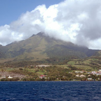 Il était émouvant de penser, pendant quelques minutes, que l’on naviguait au dessus d’une forêt de navires, victimes du nuage de cendres incandescentes, qui a aussi coulé le » Tamaya » qui est à plus de 60m de fond, encore droit et fier posé comme invincible sur ce sanctuaire de sable noir dans la baie de St Pierre.