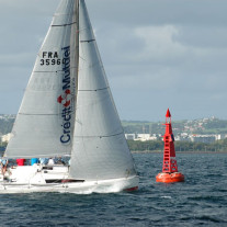 A quelques encablures de la ligne d’arrivée mouillée dans la Baie de Fort de France (baie entrée en 2011 dans le cercle fermé des 29 plus belles baies du monde), juste en face de la Pointe du Bout, le vent a été un peu plus soutenu.