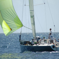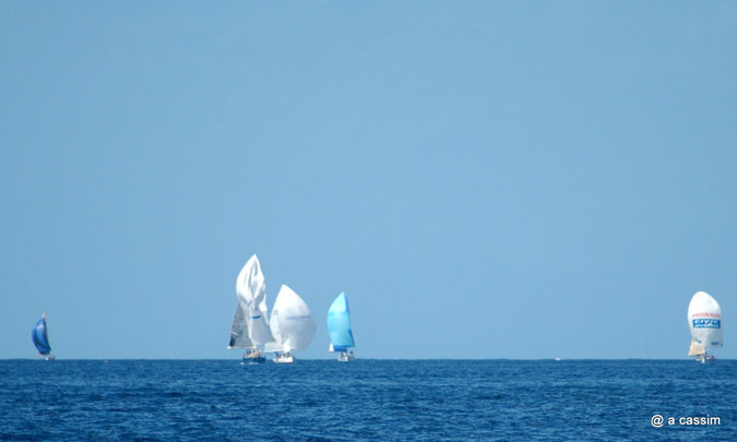 Le vent était d’ E/NE et on filait à 20/25 N sur une mer d’un bleu profond car tout au bout de l’Ile, les premières voiles faisaient leur apparition.