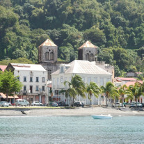 Puis nous longerons la capitale, Fort de France, ses constructions modernes, au fond les clochers de la Cathédrale St Louis (19em siècle), le « malecon », grande promenade en bord de mer, doté de pontons pour des voiliers de passage et pour les traversiers.