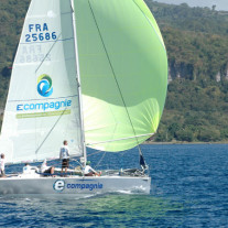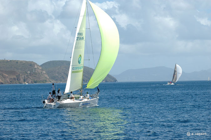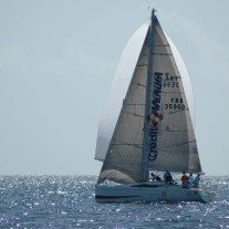 Difficile de loin de déterminer les premiers, mais dans le groupe de tête, « Hallucine » le Melges 24 de Régis Guillemot, et celui de son concurrent direct GFA Caraïbes, skippé par Nicolas Gillet, tous deux assistés d’un équipage de bon niveau.