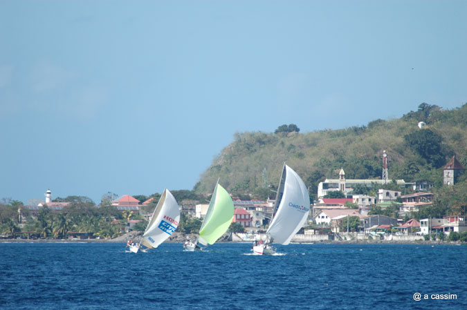A chacun sa route, mais les plus habiles ont louvoyé tout au long de la côte, afin d’essayer d’éviter des zones de dévente au pied de la Montagne pelée, et de s’extirper de la baie de St-Pierre en se laissant pousser sous spi par un vent au portant.