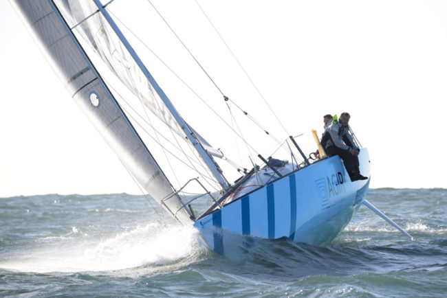 Avec le prologue disputé hier dans des conditions musclées, l’AG2R LA MONDIALE a offert les premières images saisissantes d’un spectacle qui débutera à Concarneau le 22 avril. Si une Transat évoque avant tout les surfs alizéens et la route vers les latitudes clémentes, il faut aussi rappeler la dimension matérielle de cette aventure : un Figaro de 3 tonnes et 2 skippers (Adrien Hardy et Thomas Ruyant, solides prétendants à la victoire), qui consommeront 120 litres d’eau à deux, 50 litres de gasoil et un panneau solaire pour recharger les batteries du bord, pour une traversée de 20 jours de mer jusqu’à Saint-Barthélemy (3 890 milles).