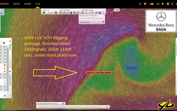 4000 milles devant ce groupe, le leader de la course, Jean-Luc Van Den Heede, est actuellement confronté à ce qui est devenu l’un de ses plus gros tests à ce jour. Lors d’une conversation de deux minutes avec le QG de la course aux Sables d’Olonne, il a parlé de vents de 65 noeuds et de mers de 11 mètres. Mais au moins, il se trouve maintenant à moins de 1 900 milles du cap Horn, que le Français comptait boucler autour du 21 novembre.
