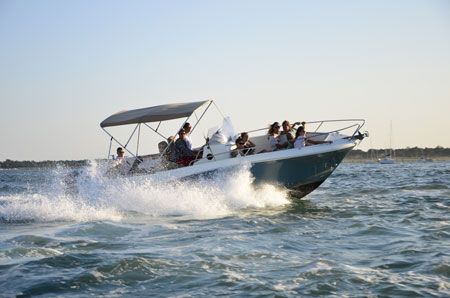 Il propose de vous amener votre bateau « prêt à naviguer » et de personnaliser votre journée sur l’eau selon vos désirs: plateau de fruits de mer à bord ou tout autre repas, boissons, skipper, guide…