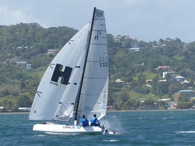 Après un bref louvoyage vers la sortie de la baie du Vauclin, Martin/Gaté, sont en tête suivis des suisses Lutz/Schlatter, de Vincent et Emmanuel Boulogne et de l’équipage martiniquais GFA Caraïbes Gillet/Poix.