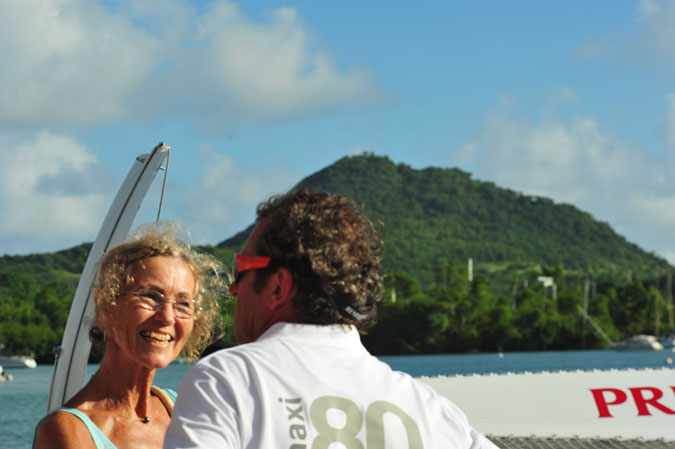 | Le skipper Normand, accompagné pour l’occasion par Bambino, alias François Denis, Gurloës Merrien et Patrice Richardot, trois membres de son équipe technique, de Simon Jean Joseph, coureur automobile, de Djany Rémy, le patron de la Yole Marinoise ainsi que d’un journaliste de Martinique Première Radio, ont réalisé leur circumnavigation dans le sens inverse des aiguilles du montre, c’est-à-dire d’est en ouest.« Le but était de passer en milieu de journée dans la baie de Fort-de-France pour assurer le spectacle et c’est ce que nous avons fait d’autant qu’au moment où nous sommes passés, un grain – le seul que nous ayons eu de la journée – a balayé le plan d’eau et nous avons réalisé une pointe à 34 nœuds sous gennaker », a détaillé Lionel, précisant par ailleurs avoir effectué une première partie de parcours express avant de ralentir un peu dans les dévents de l’île. « Nous sommes monté dans le nord assez facilement puisqu’il nous a fallu à peine deux heures et demie pour arriver du Marin jusqu’à Macouba. Après, sous le vent de la Montagne Pelée, ça a un peu trainé mais, heureusement, pas trop longtemps. C’était vraiment sympa. Nous avons eu peu de mer. Le bateau n’a donc pas trop souffert. Notre temps est honorable. Je suis content », a conclu Lemonchois, particulièrement ravi de l’accueil qu’il a reçu en Martinique tout au long de la semaine. Après une journée de repos demain, le skipper du Maxi80 Prince de Bretagne quittera les Antilles lundi en fin de journée pour rallier Lorient, son port d’attache.
