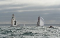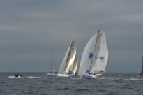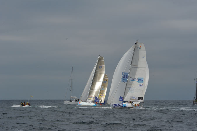 En class40, le fascinant Bernard Stamm et son Cheminées Poujoulat qui est passé du 60 pieds à ce voilier plus petit (un peu plus de 12m), le sien étant toujours à l’Ile de la Réunion après ses problèmes dans le dernier Vendée Globe. Il est suivi du jeune Thomas Ruyan qui marque des points sur Courrier Dunkerque.