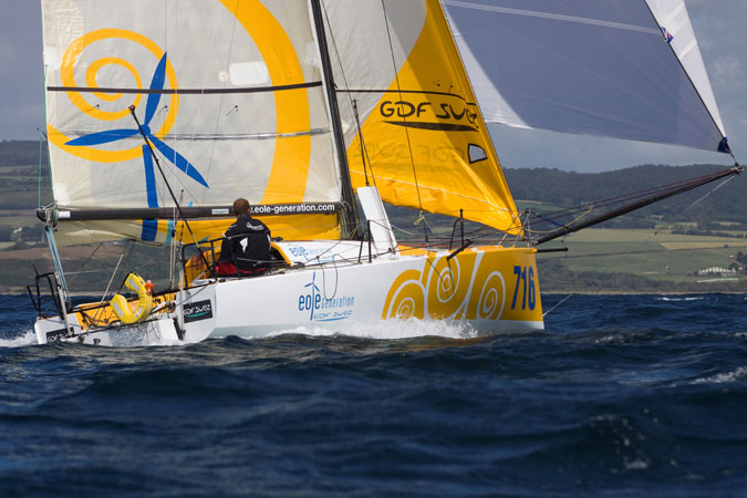 Victime d’une avarie lors de sa dernière course, Sébastien Rogues a récupéré, il y a tout juste une semaine, son prototype « Eole Generation – GDF SUEZ » après un passage en chantier.
