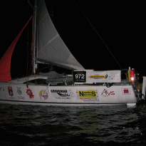 Arrivée au petit jour du voilier aux couleurs de la Martinique, bel oiseau blessé, mais équipage heureux !La nuit a été longue pour Gaston Talba et Albert Lapiquonne, l’équipage du voilier « La Martinique dans la course », mais aussi pour tous ceux qui les attendaient .. Prévus arriver en fin de nuit, ils n’ont pu franchir la ligne d’arrivée...