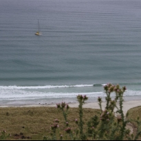Bernard Stamm dans la baie de Kaikai à Dunedin en Nouvelle Zélandenie