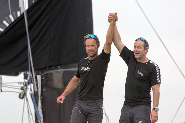 Transat Jacques Vabre les vainqueurs en Ultime : Thomas Coville et Jean-Luc Nélias sur SODEBO