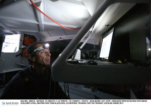 « C’est humide, il y a de la mer, du vent, des grains, des cargos mais nous avons un beau ciel étoilé. Nous avons un peu tiré sur le physique depuis le départ avec de nombreux changements de voiles, mais nous avons réussi &a grave; nous reposer 2h chacun. Je pense que nous avons été un peu plus incisifs que les autres mais Virbac glisse très bien aussi. Le passage du rail a été incroyable car nous dépassions les cargos assez rapidement. Il fallait être attentif, mais le trafic ne nous a pas trop dérangé. »