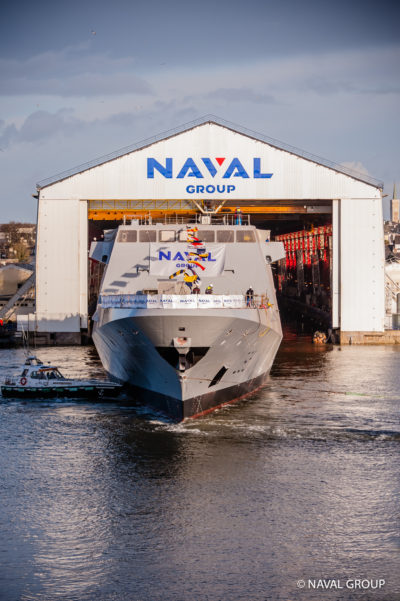 Le 1er février 2018, Naval Group a mis à flot la frégate multimissions FREMM Normandie, à peine plus de 12 mois après le début d’assemblage de sa coque dans la forme de construction du site de Lorient. Le franchissement de ce jalon est une étape importante qui témoigne de la maîtrise industrielle et technologique de Naval Group.