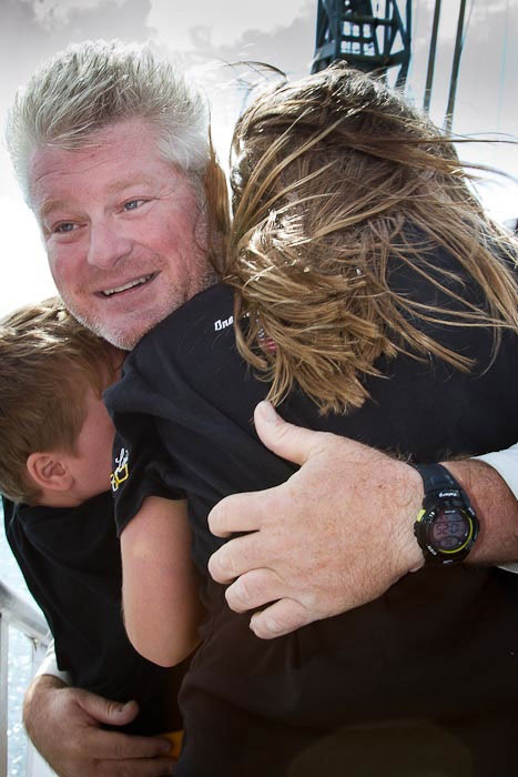 Il a été accueilli par sa petite famille, et a toujours été soutenu par sa femme Meaghan qui est aussi navigatrice.