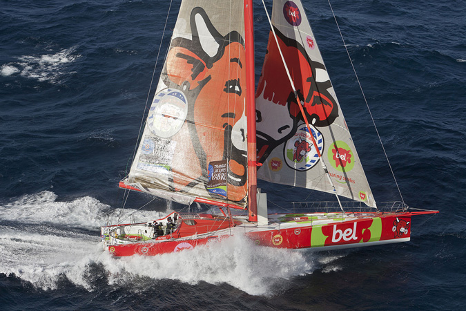 Après un convoyage de 12 jours réalisé dans des conditions variées et sous escorte poétique de dauphins, le bateau au sourire de « La vache qui rit® » mené par Kito de Pavant et Yann Régniau, a retrouvé les vertes prairies normandes dans les temps et en grande forme.