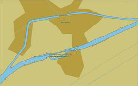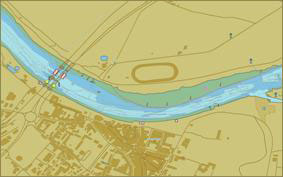 lignes de rives, ouvrages, contours des écluses, barrages, bouées, balises et panneaux de signalisation, chenal et axe de la voie navigable…