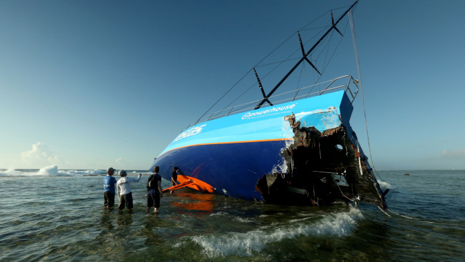 December 19, 2014. Team Vestas Wind salvage operation begins in St Brandon Island – Mauritius.